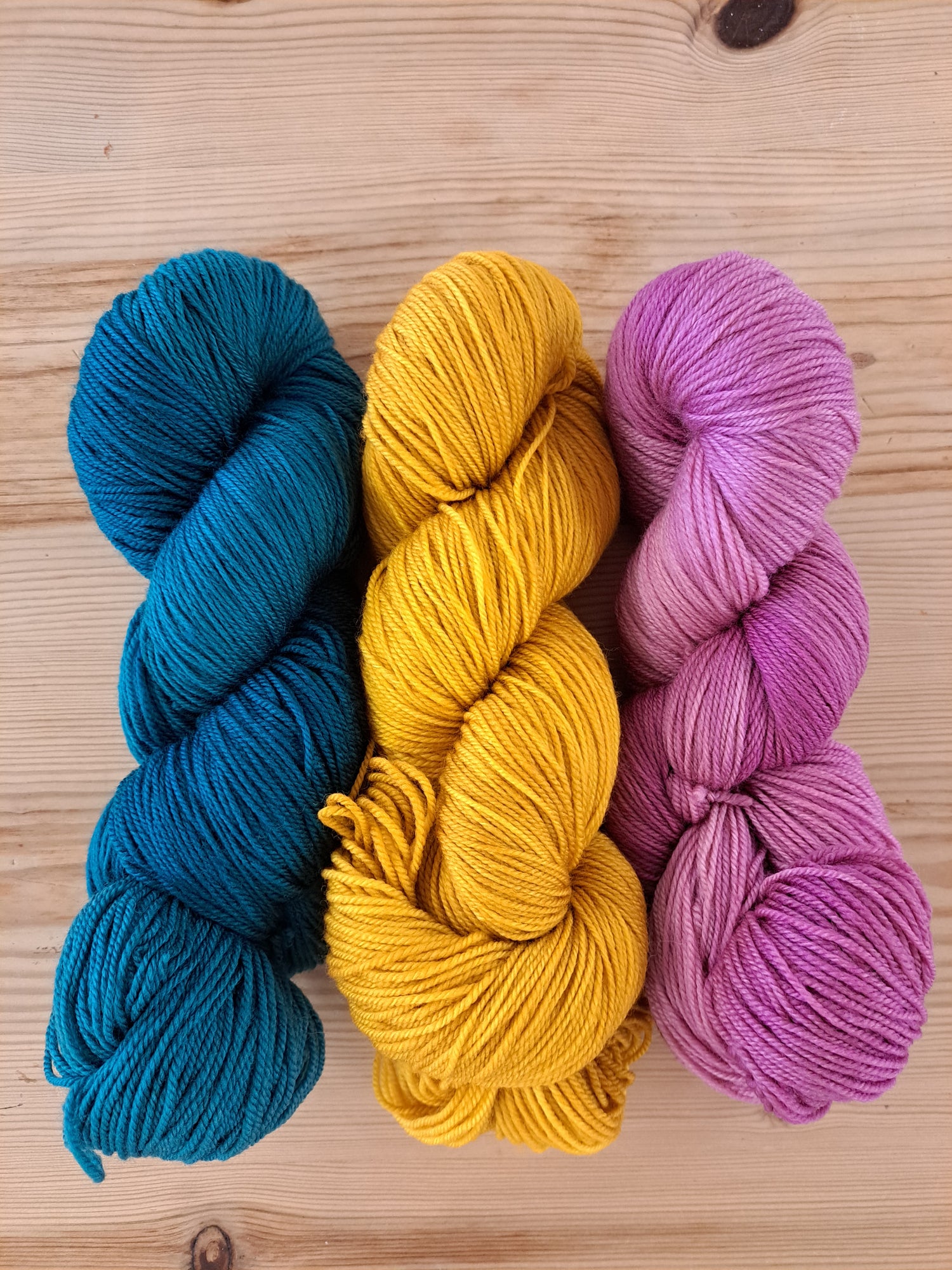 Wir sind begeistert von den Farben und dem Material. Es lässt sich wunderbar kombinieren zwischen solid und im Farbverlauf gefärbten Wollsträngen.